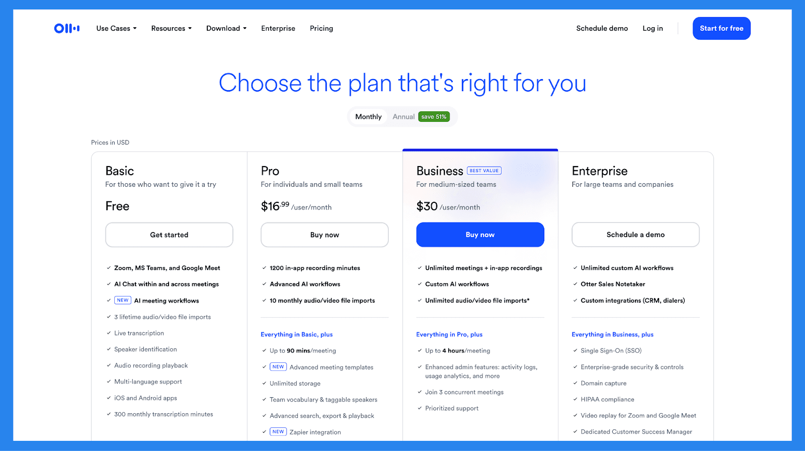• Otter.ai – Real-time transcription tool best suited for live note-taking during meetings
