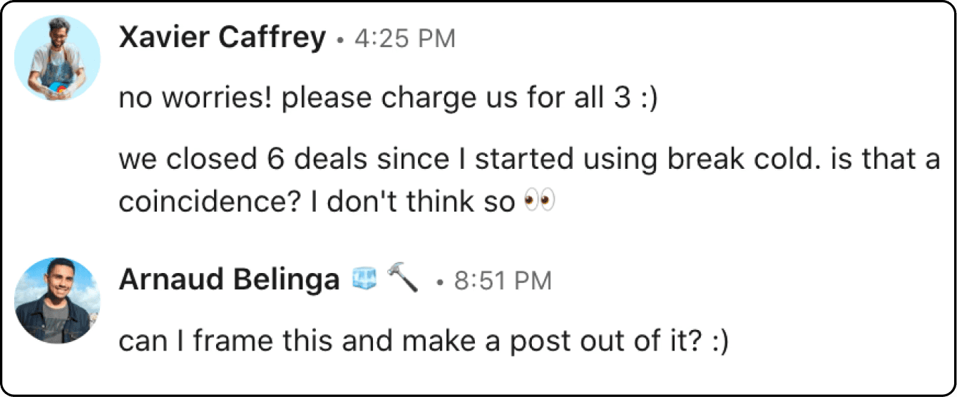Xavier shared how he closed deals 6 deals in 14 days using Breakcold CRM's free trial (infinite ROI).